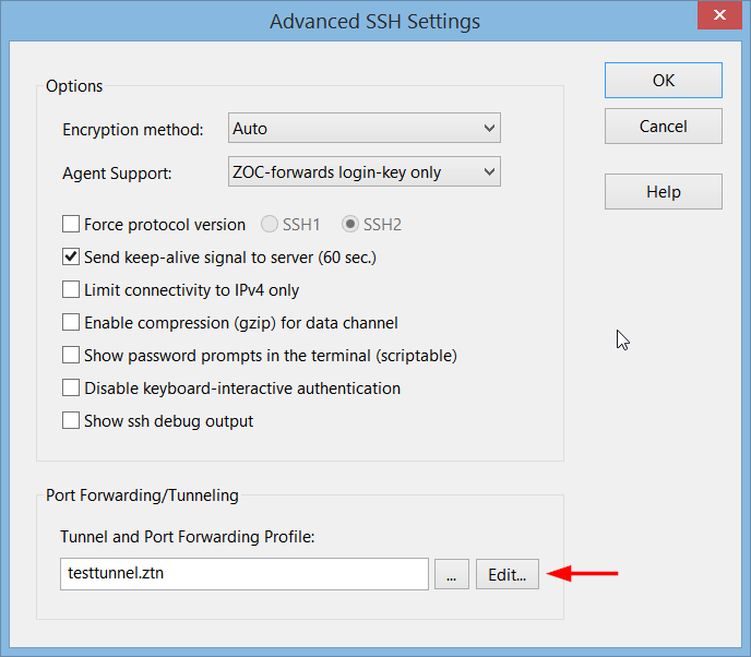 Connecting to an SSH-Server with Port Forwarding via ZOC